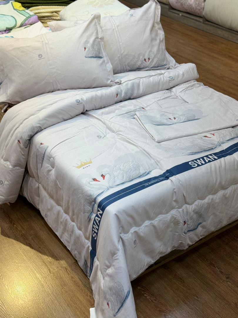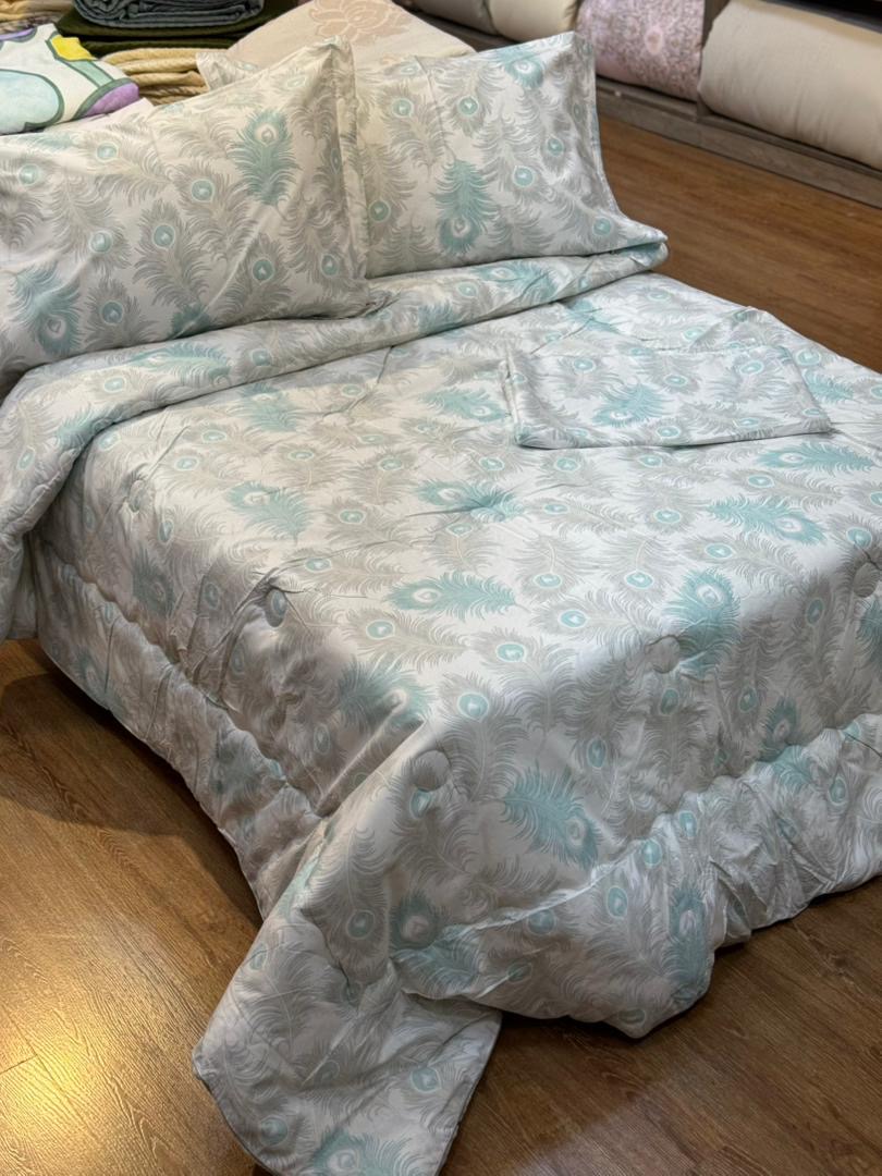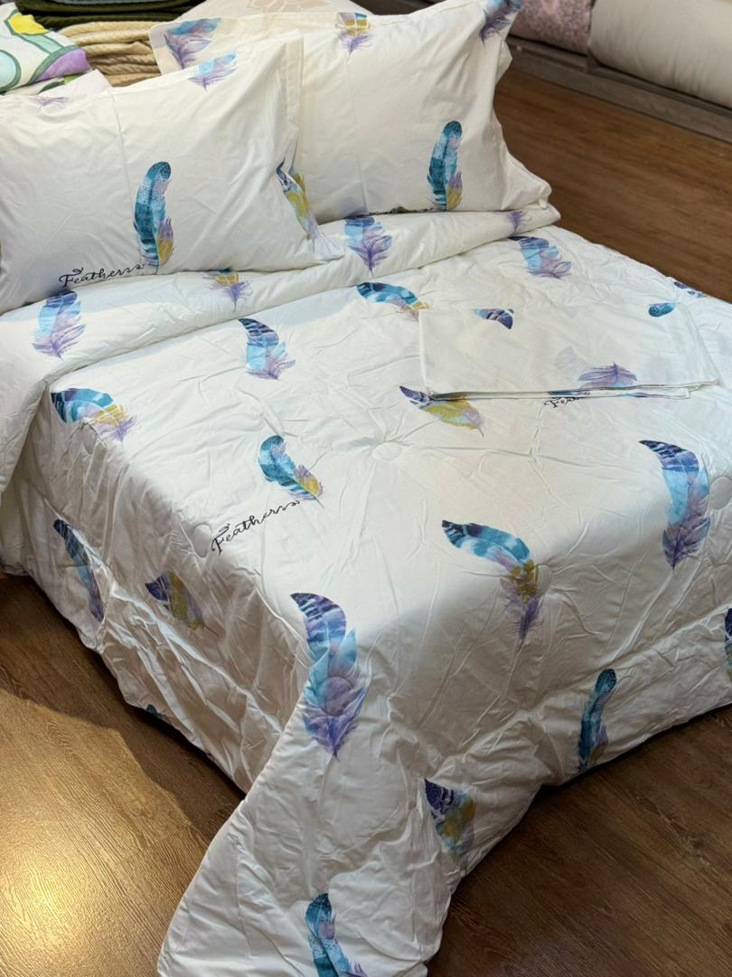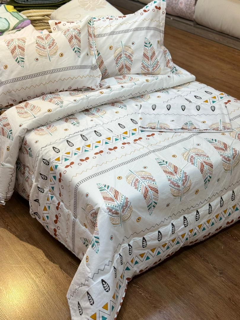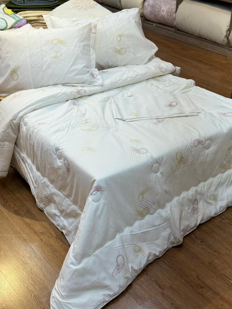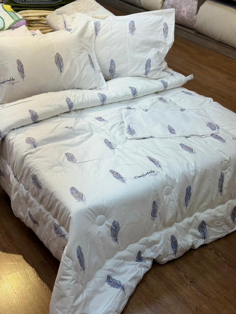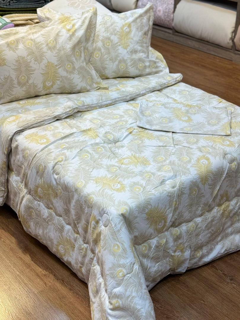 سرویس لحاف تکنفره،جنس نخ میکرو،چهار تکه شامل:دو عدد روبالشتی،ملحفه و لحاف: